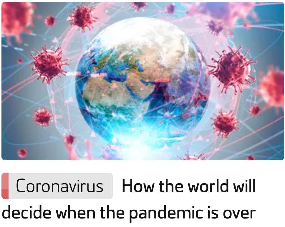 Läkaren och tillika expert på infektionssjukdomar, dr Chris Woods, konstaterar i en intervju att det inte kommer att komma en dag när någon säger att ”Ok, nu är pandemin över” eftersom det inte finns något universellt överenskommet kriterium att gå efter, utan länder får titta på minskade covidfall över tid. Forskare förväntar sig att Covid-19 till slut kommer att bli ett förutsägbart virus som influensan och få säsongsbundna utbrott. Således kommer covid att finnas med oss även efter att pandemin är över. Att länder med fullvaccinerad befolkning har fortsatt smittspridning har redan påvisat detta.