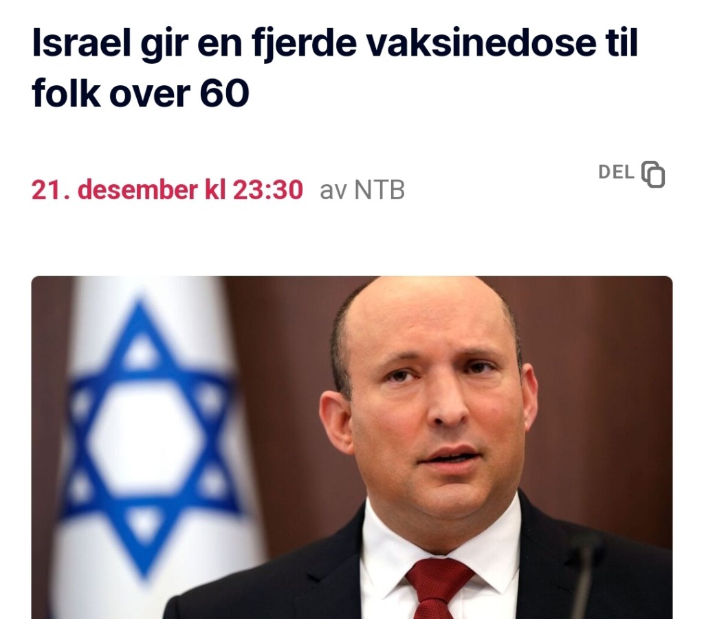 I Israel som var tidigt ute med vaccinering, men bara har en vaccinationsgrad på 59%, har regeringen beslutat att en fjärde dos ska rullas ut och börjar nu vaccinera personer över 60 år samt vårdpersonal. Premiärministern har uppmanat alla att vaccinera sig ännu en gång för att ”ta ansvar för hälsa och allas vinster då vaccinen räddar liv”.