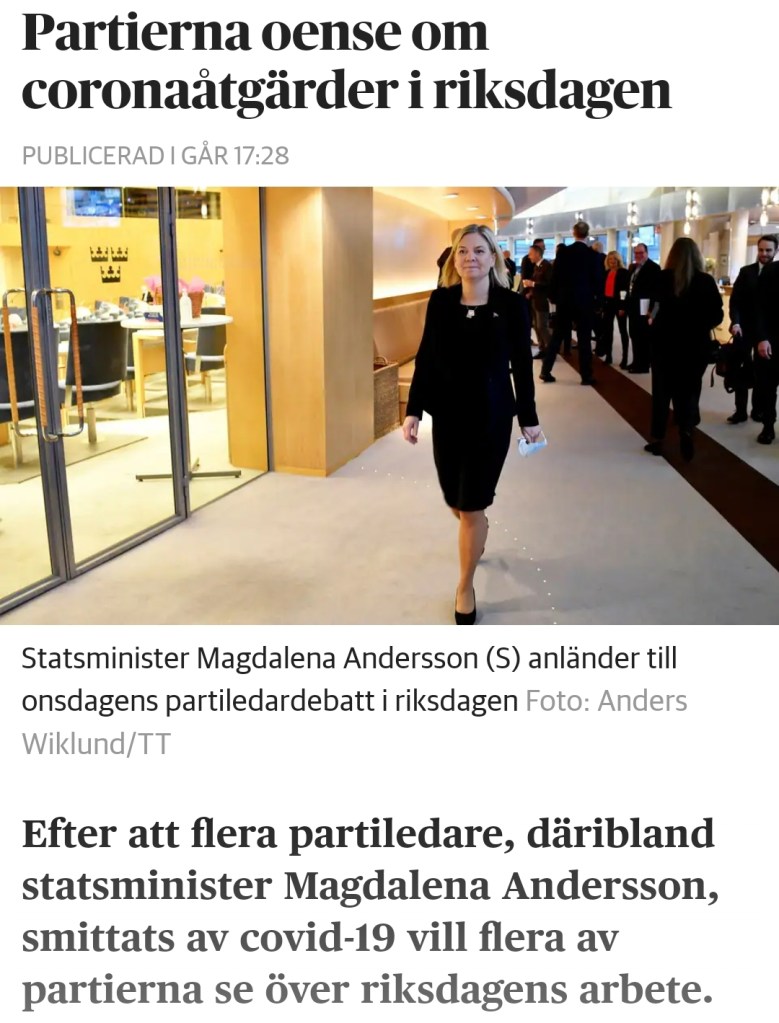 Efter att såväl partiledare som statsministern fått Covid-19 lyfts nu krav på färre riksdagsledamöter i riksdagen när ledamöterna nästa vecka samlas till votering om pandemilagen och är det något som denna plandemi visat, så är det att vi klarar oss alldeles utmärkt med färre riksdagsledamöter. Det vore därför ett ypperligt tillfälle att besluta om att permanent reducera antalet riksdagsledamöter i Sveriges riksdag till hälften – inte bara av kostnadsskäl, utan för att effektivisera det politiska arbetet. I våra grannländer har man redan i dag drygt 169-200 ledamöter.