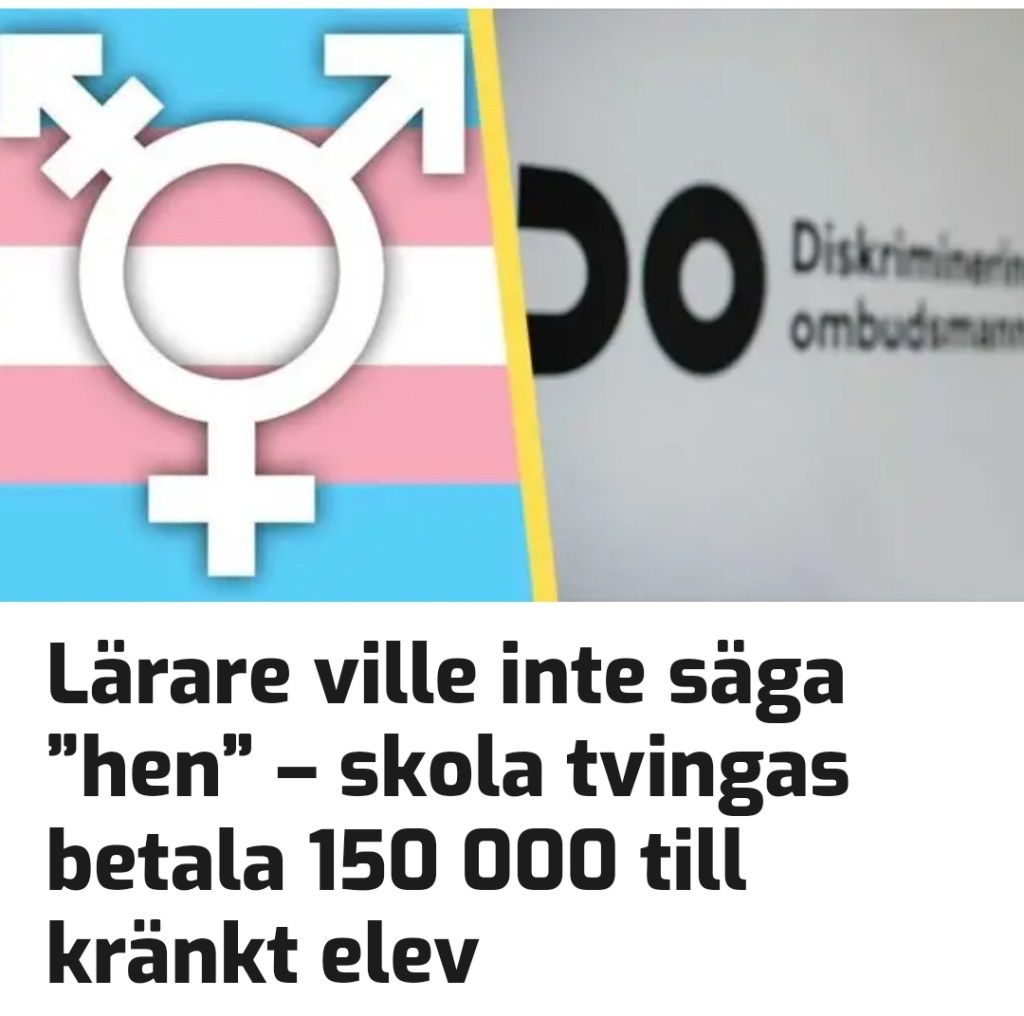 ”Myndigheten Diskrimineringsombudsmannen (DO) har i ett beslut nyligen slagit fast att alla i en persons omgivning måste tillmötesgå krav på att tilltala personer som ser sig själva som ”ickebinära” (mentalt könlös) som hen.”