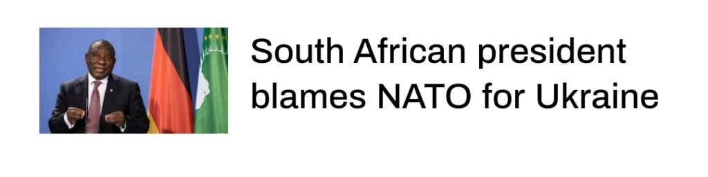 38 reaktioner till “Sydafrikas president pekar ut Nato som ansvarig provokatör för konflikten