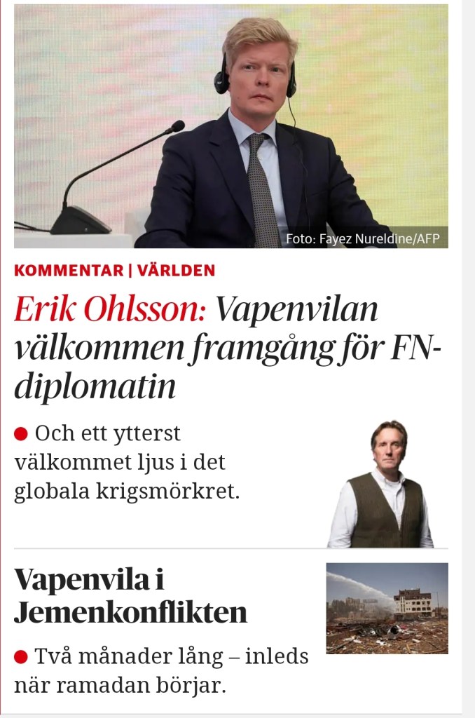 Det cyniska är att varje år vid den här tiden när ramadan infaller inleds vapenvila i två månader och sedan börjar det besinningslösa dödandet igen som om inget hänt. Det är därför stötande att se hur DN i dag skriver att ”vapenvilan är en framgång för FN-diplomatin”, när det endast beror på ramadan och det är samma sak varje år samtidigt som hela generationer av barn dör ut.