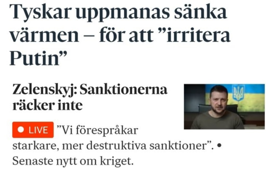1. Jag bodde en gång för länge sedan i Moskva, och jag fann Moskva bättre än Sverige men i många avseenden detsamma. Ukraina är helt enkelt en lydstat till USA som tillsatt en skådespelare att förment leda, och sedan skriver hans strategi, tal, repliker, koreografi, manuskript och manus. USA rycker i snöret och sprattelgubben ger en föreställning. Europa agerar impulsivt, oöverlagt och självdestruktivt. Man vill till exempel ersätta rysk gas med amerikansk, men dels finns det inte tillräcklig produktion, transport eller ens mottagning, och dels är den tre till fyra gånger så dyr, vilket driver upp Europas kostnadsläge så dom blir för dyra för marknaden, det betyder stängda industrier och förlorade jobb. Europa går samma väg som romarriket.