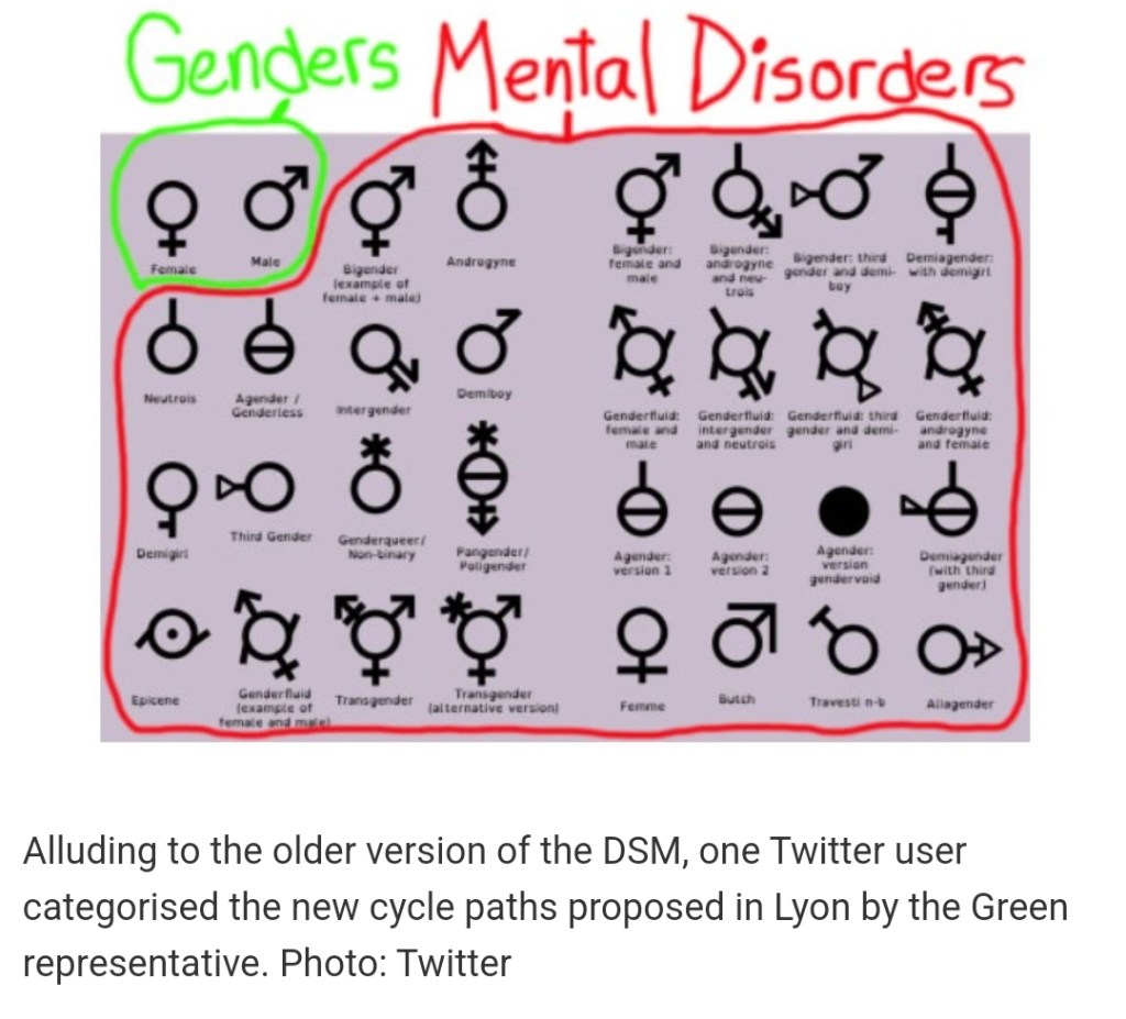 Att HBTQI-frågor genomsyrar stora delar av Europas länder är inget nytt, men ibland går det överstyr – som i franska Lyon där Fabien Bagnon, en miljöpartist som är ansvarig för vägar och aktiv mobilitet för Stor-Lyon, vill designa ”inkluderande” cykelvägar. Enligt HBTQ2SIA+-vanföreställningar kan det innebära att man måste skapa minst sextio separata cykelbanor.