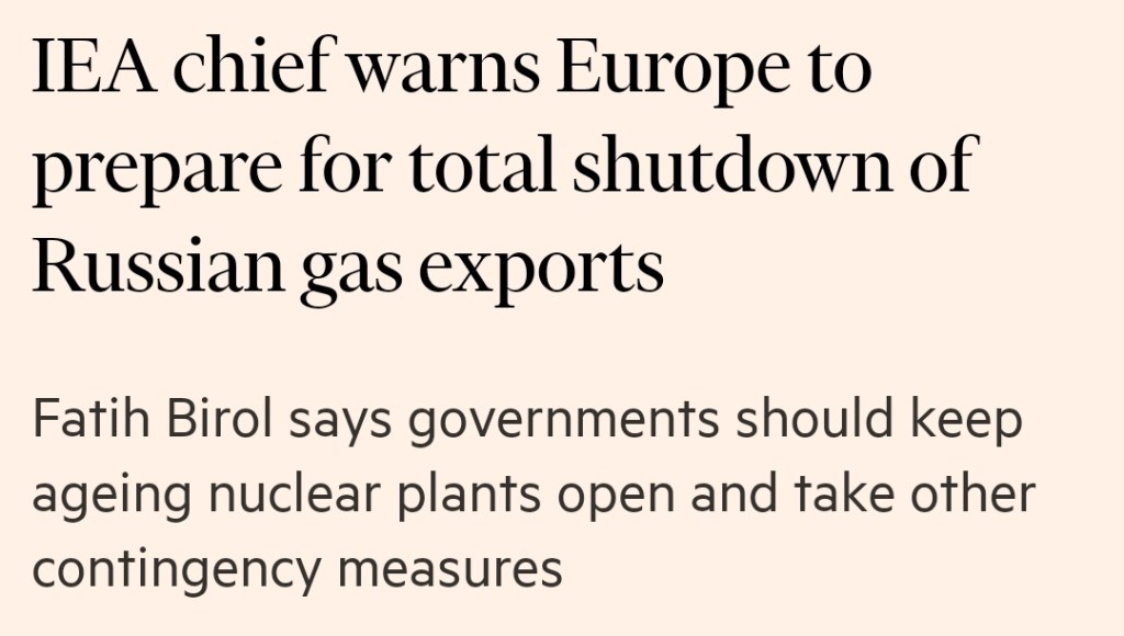 Energikrisen i Europa är ett återkommande problem, särskilt efter att EU fryst sin relation med Ryssland och därmed även riskerar att mista gasleveranserna. I dag skickade dessutom chefen för Internationella energibyrån (IEA) Fatih Birol ett varningens finger till EU med uppmaning om att vara beredda på möjligheten av en fullständig avstängning av rysk gasexport i vinter samt uppmanade blockets medlemmar att bredda spannet av åtgärder som syftar till att förbereda för detta scenario.