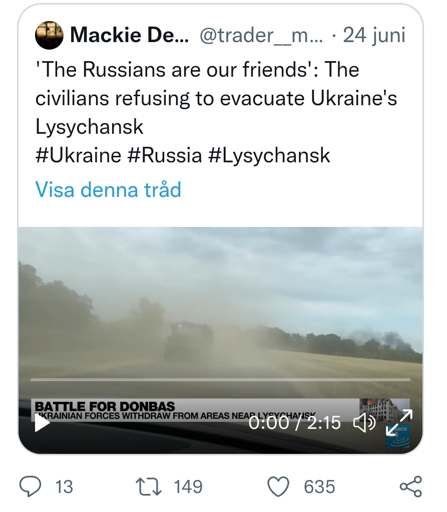 När TV-kanalen France 24 nyligen gjorde ett reportage från staden Lisichansk fick de oväntade reaktioner från stadens invånare som hoppas att ryssarna ska vinna kriget och de vägrade även att evakueras från den krigsdrabbade staden.