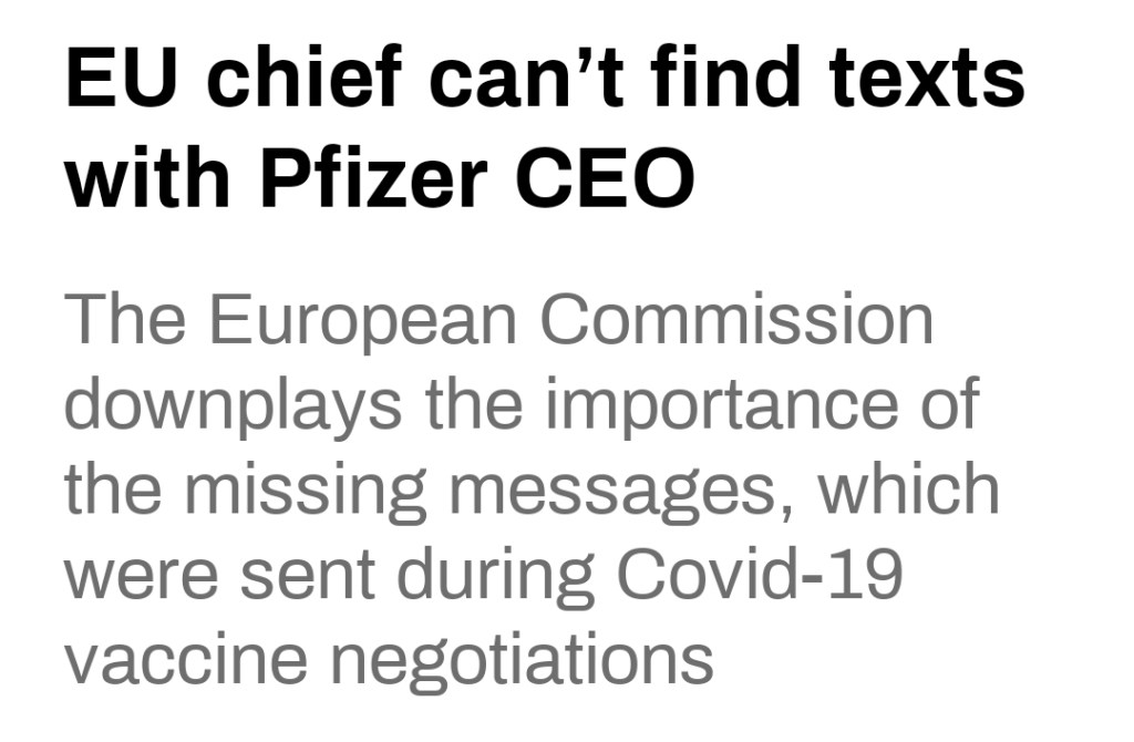 Som av en händelse säger nu EU-kommissionen att den inte kan ”hitta” de textmeddelanden som skickats mellan dess president Ursula von der Leyen och Pfizers VD Albert Bourla under förhandlingarna om det massiva vaccinavtalet förra året. Man förnekar också tidigare anklagelser om ”administrativa missförhållanden”.