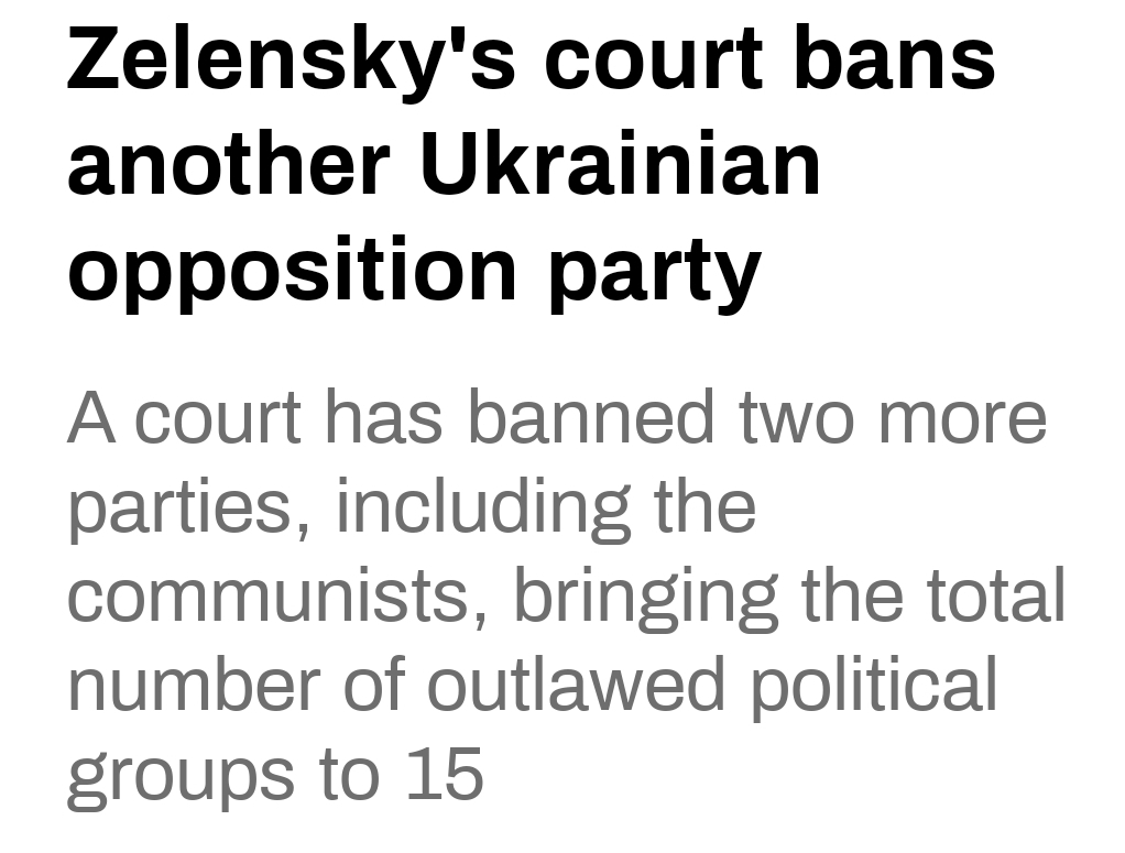 I dag blev det känt att den åttonde förvaltningsöverdomstolen i Lviv i Ukraina förbjuder ytterligare två ukrainska oppositionspartier – ”Happy Ukraine” och kommunistpartiet (CPU) – vilket medför att det totala antalet förbjudna politiska grupper nu uppgår till 15 stycken.