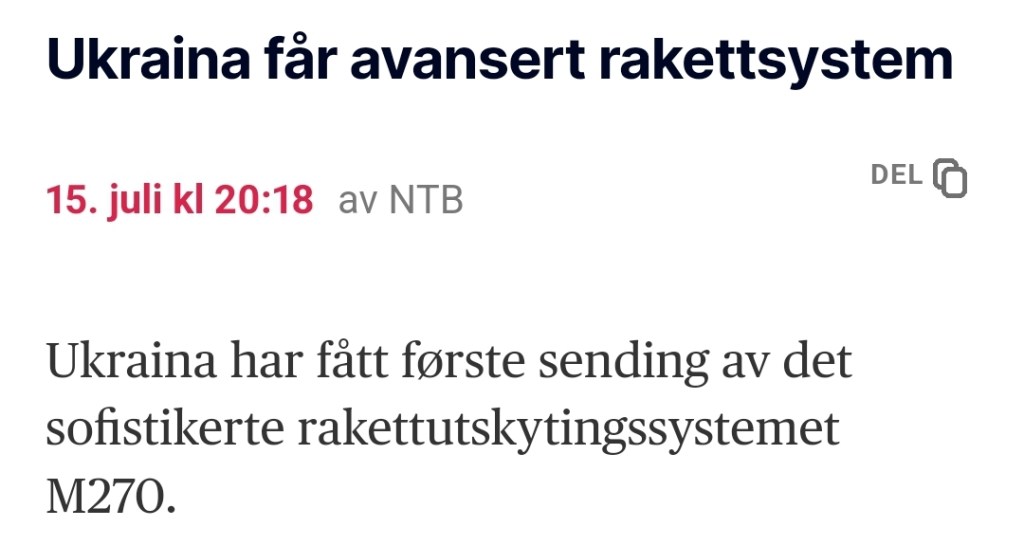 Ukraina har tagit emot den första leveransen av det sofistikerade missiluppskjutningssystemet M270, som är ett mobilt amerikansktillverkat raketgevär, vilket bekräftades av Ukrainas försvarsminister Oleksiy Reznikov i går. Enligt Reznikov kommer det vara ett bra komplement till HIMARS-systemet.
