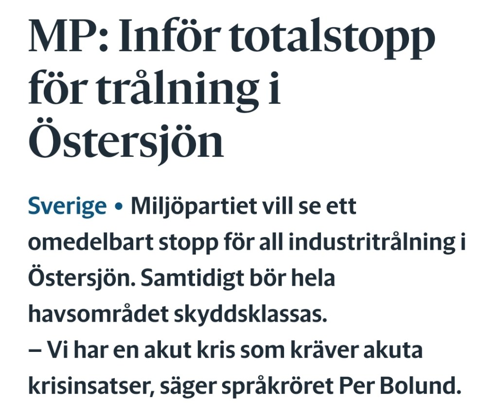 Men nu är det valtider och partiet längtar tillbaka till maktens korridorer, så vad passar då bättre än lite valfläsk?! Partiet basunerar nu ut att man omedelbart vill se ett totalstopp för alla industritrålare på svenska vatten, utan möjlighet att kunna ge dispenser samt ett förbud mot industrifiske i hela Östersjön inklusive en avvecklingsplan. Ett sådant förbud fanns för övrigt fram till EU-inträdet men slutade att gälla 1997. Trålningsstoppet ska enligt MP bara gälla den storskaliga fiskmjöls- och oljeindustrin och inte det småskaliga fisket för konsumtion.