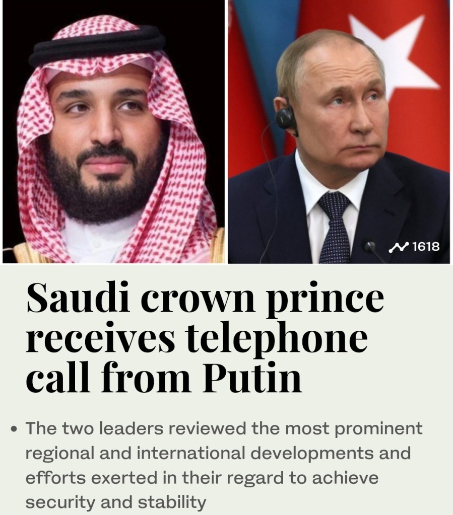 Förra veckans möte mellan USA:s president Joe Biden och Saudiarabiens kronprins Mohammed bin Salman resulterade inte i någon större upptining av den spända relationen. Saudis goda handelsrelation med Ryssland består dock och i går ringde Rysslands president Vladimir Putin till den saudiske kronprinsen för att diskutera situationen på de globala oljemarknaderna.