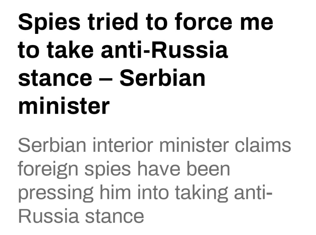 Serbiens inrikesminister Aleksandar Vulin avslöjade i lördags att en stor utländsk underrättelsetjänst har pressat honom om hans inställning till Ryssland och Kina samt deklarerat att han förväntar sig en stor mediekampanj mot honom den kommande veckan.