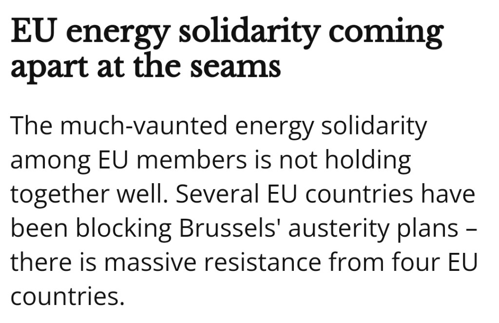 6 reaktioner till “Splittring i EU efter krav på solidaritet i energifrågan