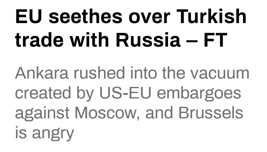Noterar roat att EU är förbannade på Turkiet för att de struntar i EU:s sanktioner mot Ryssland och fortsätter sin handel med ryssarna samtidigt som de inte kan göra något åt det.
