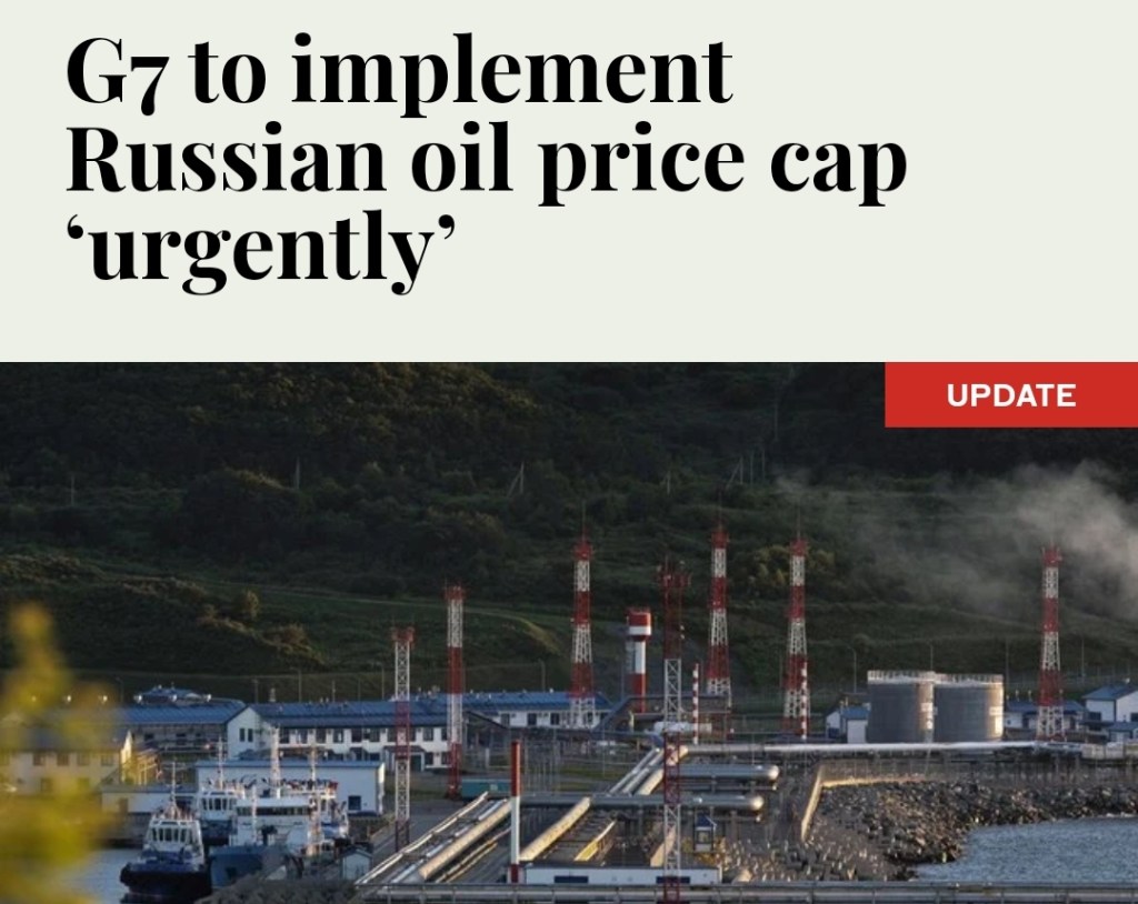 Tidigare i dag beslutade G7-länderna att ”brådskande” arbeta för att implementera ett pristak på rysk oljeimport i ett försök att minska en viktig finansieringskälla för Moskva. G7 sade att de arbetade för en ”bred koalition” av stöd för åtgärden, men tjänstemän i Frankrike manade till försiktighet och sade att ett ”slutligt” beslut bara kunde fattas när alla 27 medlemmar i Europeiska unionen hade gett sitt samtycke.
