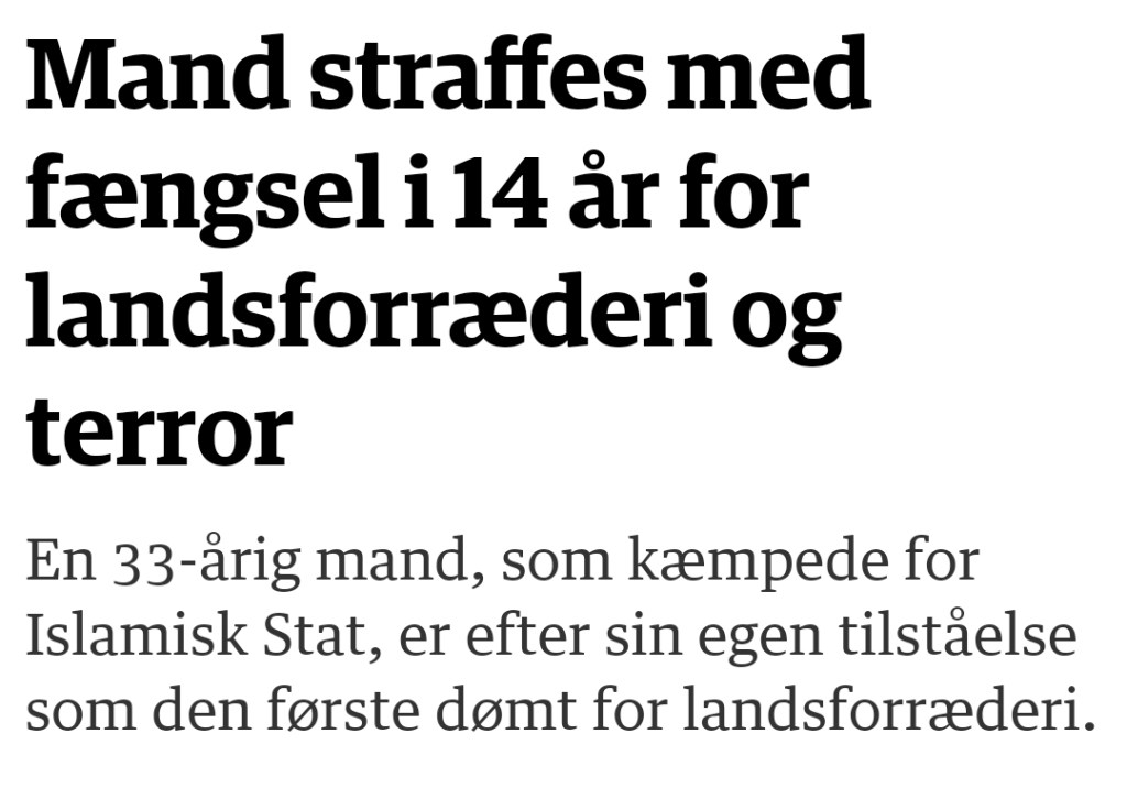 En historisk dom avgavs i kväll i Köpenhamns tingsrätt där en 33-årig man som utlämnades från Turkiet till Danmark i december 2020 och suttit häktad sedan dess dömdes till 14 års fängelse i ett fall av förräderi och samarbete med Islamiska staten i Syrien.