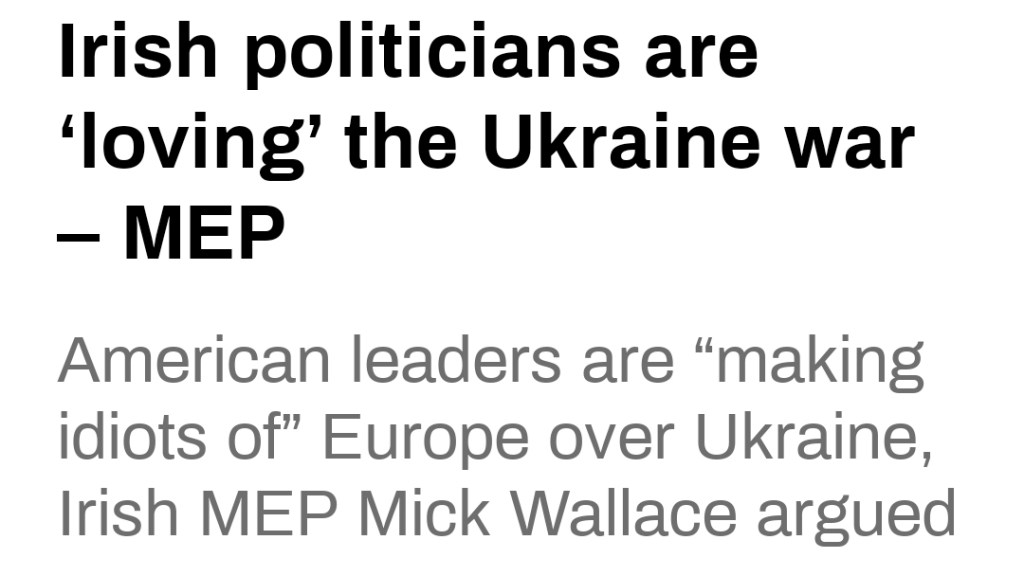 -”Fianna Fail och Fine Gael har främjat det här kriget och älskar det här kriget. Många lagstiftare i båda partierna har förlorat besinningen. Detta krig är en katastrof för folket i Ukraina och kommer att driva upp levnadskostnaderna för alla i Europa. Och vi gör det här på uppdrag av USA och Nato? Amerikanerna får oss att framstå som idioter. EU är en marionett åt amerikanerna – så förbannat svag och ledarlös.”