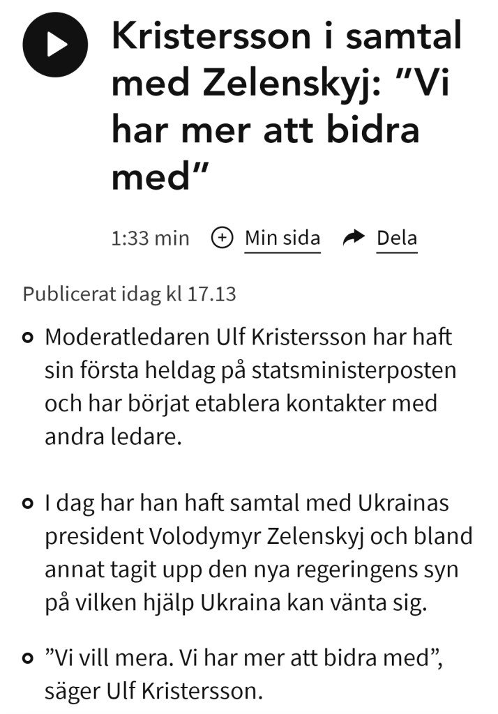 2 reaktioner till “Kristersson snabb med att knyta band med Zelensky