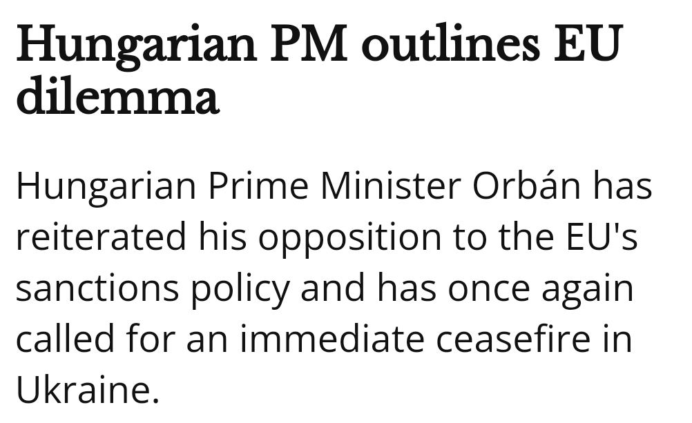 Intressant att ta del av och Orbán har rätt i att konflikten inte är mellan Ukraina och Ryssland, utan mellan USA och Ryssland, där USA utnyttjar Ukraina hänsynslöst. Men detta pratar vi inte om eftersom det skulle förstöra det narrativ som media samt politikereliten så länge duperat oss med för att vi välvilligt ska ställa upp som finansiärer.