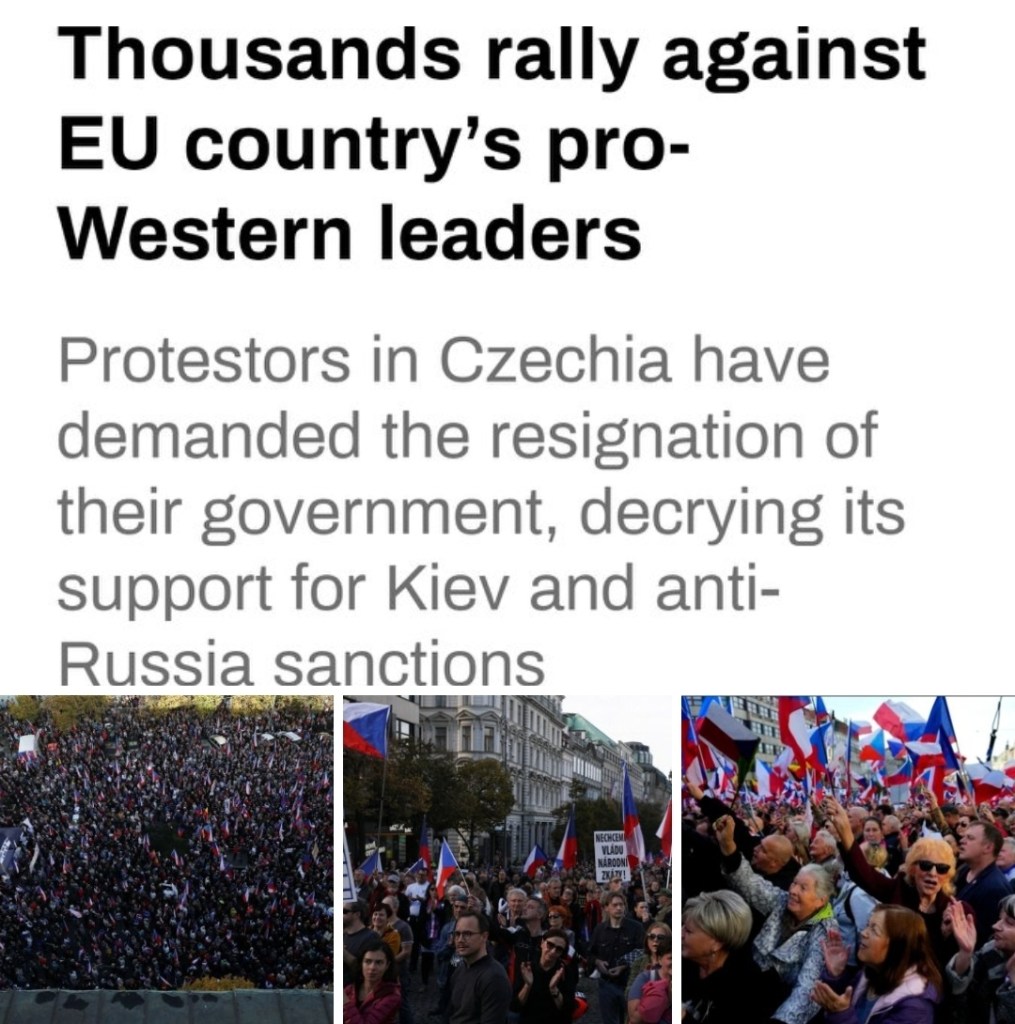 Tidigare den här månaden skedde stora protester i Tjeckiens huvudstad Prag mot den stigande inflationen och i går var det återigen dags när tiotusentals personer gick man ur huse på den nationella helgdagen för att demonstrera mot den skenande inflationen samt den tjeckiska regeringens stöd för anti-ryska sanktioner och hjälppaket till Ukraina, där man krävde att deras pro-västliga regering skulle avgå.