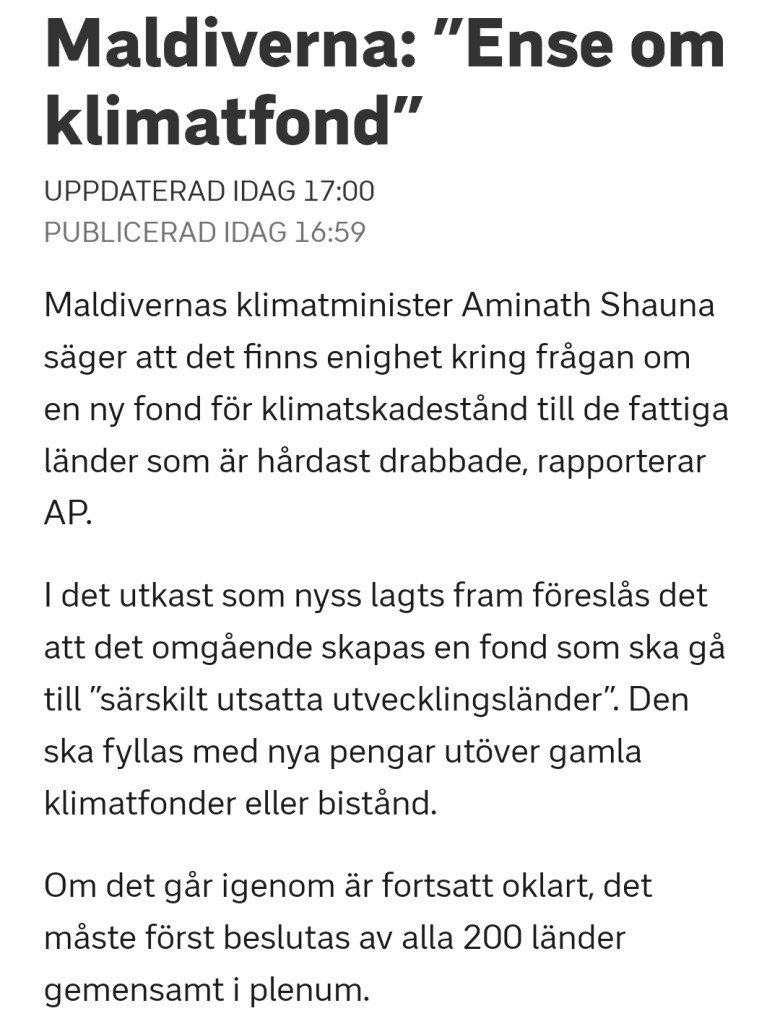På FN:s klimatmöte i Egypten som nu går på övertid har man enligt uppgift till slut kommit överens om en ny fond som ska fyllas med pengar för klimatskadestånd till särskilt utsatta utvecklingsländer.