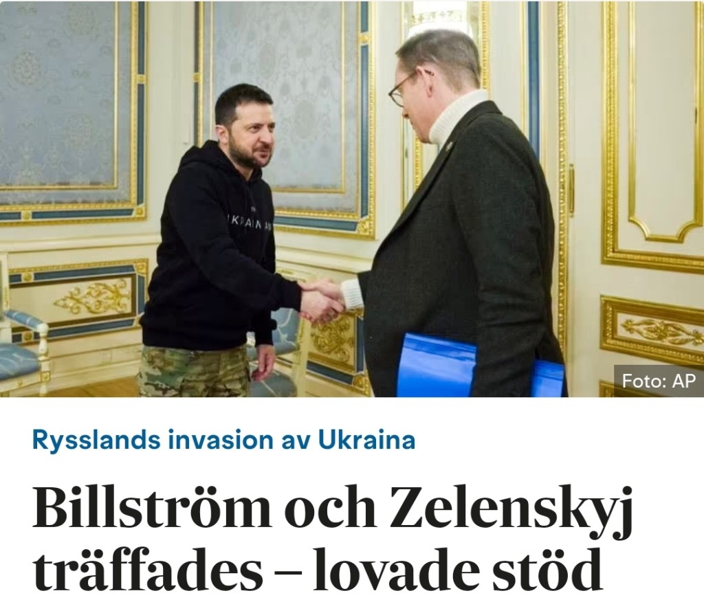 Vår nya utrikesminister Tobias Billström (M) visade sig i dag vara en lika god medlöpare som sina nordiska kollegor när de i dag reste till Kiev (mitt i brinnande krig?) för att skaka hand med Zelensky och utlova ytterligare vapenleveranser från Sverige.