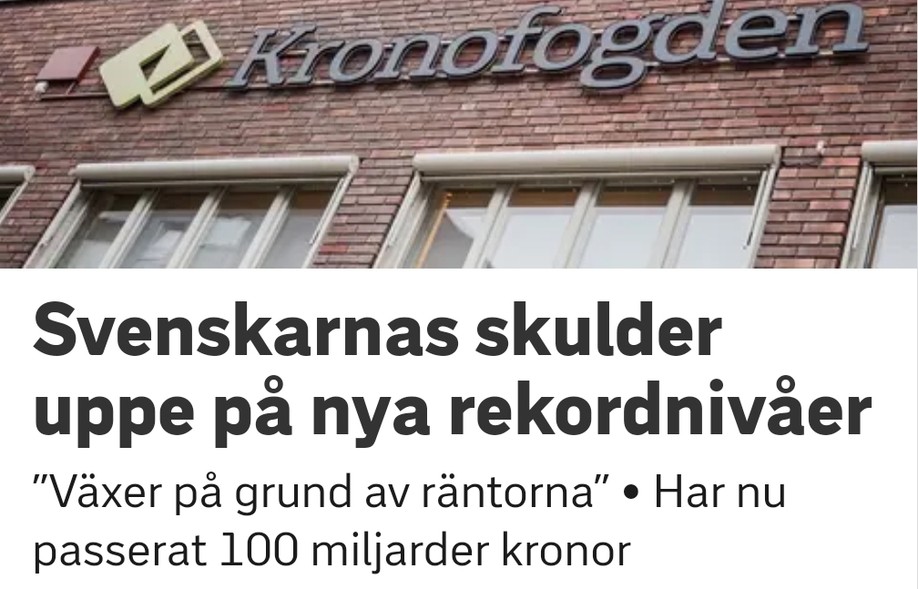Det är därför inte så konstigt att (om det nu är (del)förklaringen) skulderna hos Kronofogden ökar, som är ytterligare ett samhällsområde som får problem, utöver våldet, bidragsbedrägerierna, skolresultat och brister i samhällsservicen… och gemenskapen/sammanhållningen.