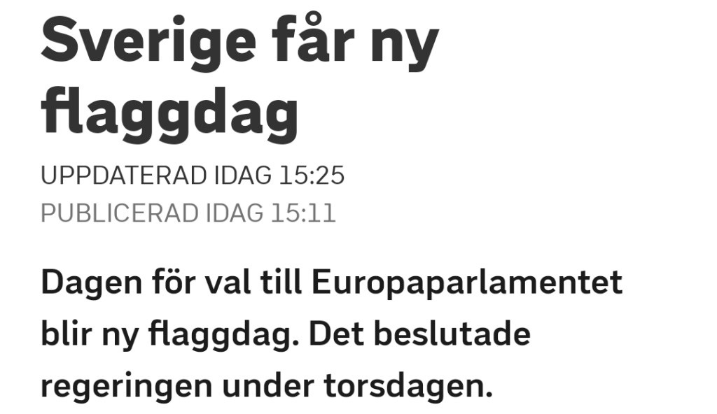 I dag ännu ett märkligt utspel – av alla frågor som man hade kunnat prioritera att lösa, väljer man att besluta om en ny flaggdag i Sverige. Dagen vi ska hylla är ingen mindre än dagen för valet till Europaparlamentet och i juni 2024 sker den första flagghissningen. 🤦‍♀️