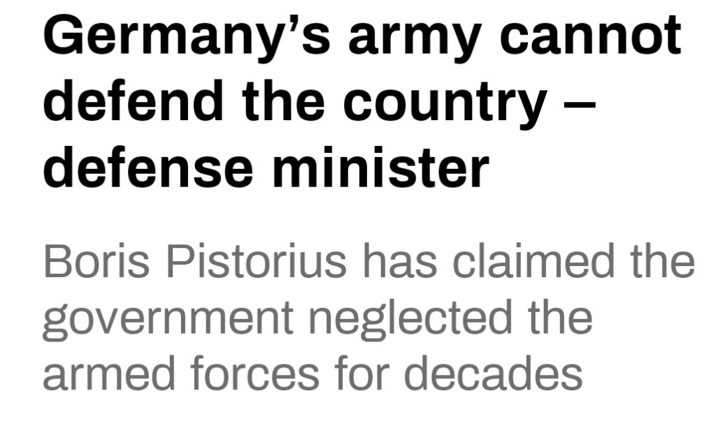 Tysklands försvarsminister Boris Pistorius hävdade nämligen i måndags att landets armé inte är beredd att skydda nationen mot militär aggression. Ministern uttalade sig under ett möte med kolleger i det socialdemokratiska partiet (SPD).