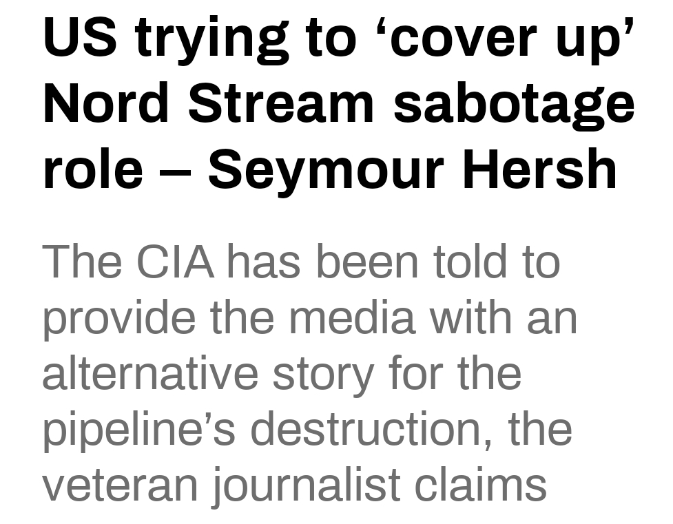 Enligt Hersh har en anonym källa med tillgång till diplomatisk underrättelsetjänst bekräftat att CIA fått i uppdrag att ”pulsera systemet” i ett försök att släta över påståendet att USA:s president Joe Biden hade beordrat att rörledningen skulle förstöras. Han noterade också att CIA hade slutfört sin uppgift och med hjälp av Tyskland planterat berättelser i såväl New York Times som Die Zeit.
