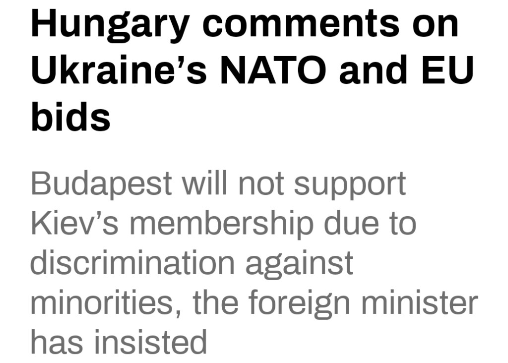 Tur att något land i Europa har vett att dra i handbromsen när den politiska eliten i Bryssel vill skapa ett snabbspår in i EU och Nato för det odemokratiska Ukraina, men med tanke på hur den ungerska premiärminister Orban i regel är stor i orden, men i slutändan ändå röstar som Bryssel vill, är det kanske bara ännu ett symboliskt utspel utan substans.