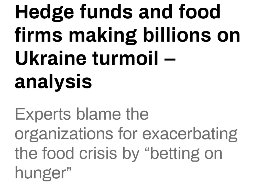 Enligt en rapport från Greenpeace undersökande journalistikenhet, Unearthed and Lighthouse Reports, tjänade tio av världens största hedgefonder (värdepappersföretag som köper samt säljer aktier och råvaror i vinstsyfte) nästan 2 miljarder dollar på matprishöjningen som skedde efter starten av Rysslands militära operation i Ukraina.