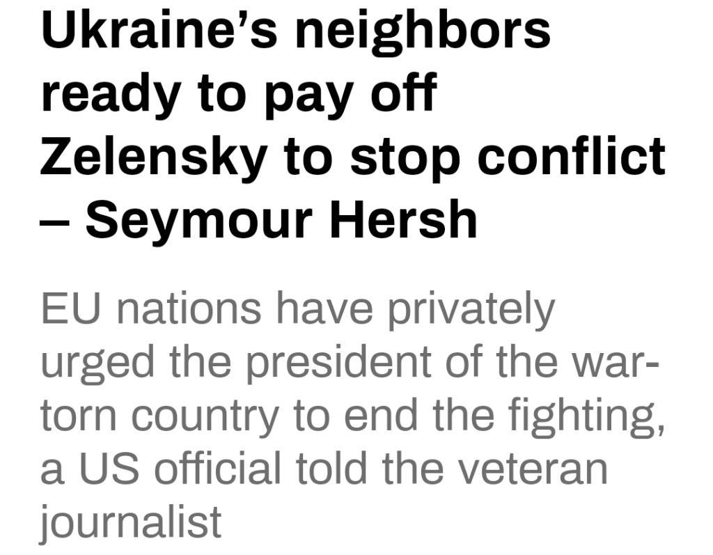 Intressant i sammanhanget är att den amerikanska veteranjournalisten Seymour Hersh, som avslöjade vem som låg bakom terrorattacken mot Nord Stream-ledningarna, nu skrivit i en artikel att en del EU-länder privat uppmanat den ukrainska presidenten Zelensky att avsluta striderna enligt uppgifter från en ”kunnig” amerikansk tjänsteman.