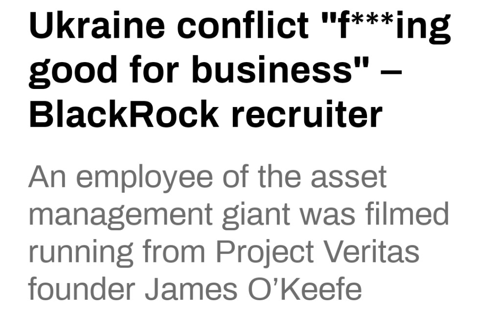 I en video som publicerades i måndags, sade en rekryterare för BlackRock till en undercoverreporter för O’Keefe Media Group att ”Krig verkligen är jävligt bra för affärerna”.