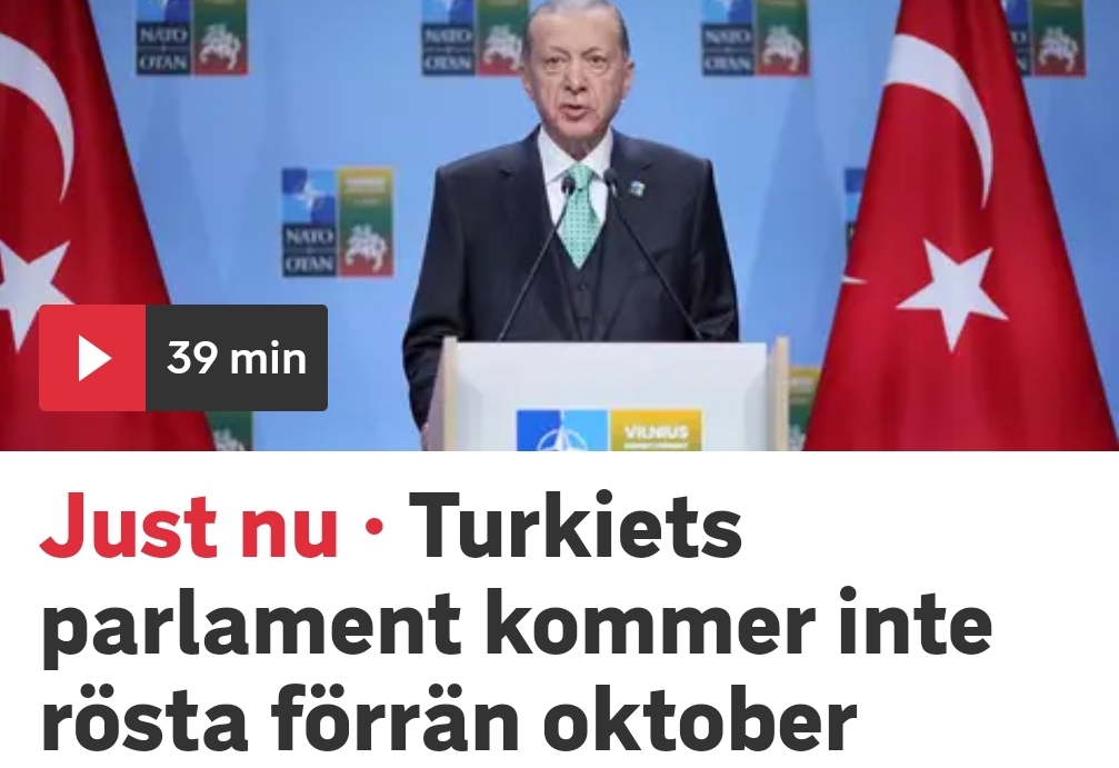 När Natomötet i dag avslutas höll Turkiets president Recep Tayyip Erdogan tal och meddelade att det inte är möjligt att ratificera Sveriges Natoansökan nu eftersom parlamentet är på sommaruppehåll i två månader, varför det kan ske först i oktober.