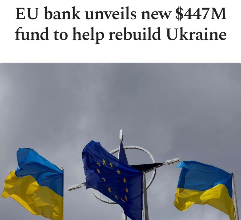 Europeiska investeringsbanken (EIB) betalade förra året ut 1,7 miljarder euro till Ukraina. I går tillkännagav Europeiska unionen en ny fond genom sin utlåningsdel värd 400 miljoner euro att spenderas på återuppbyggnad av Ukraina innan blockets långsiktiga återuppbyggnadsplan börjar.