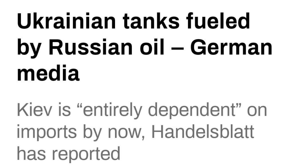 Enligt den tyska tidningen Handelsblatt använder Ukraina ironiskt nog rysk olja raffinerad i Ungern och Turkiet för att driva sina västerländska militärfordon och dieselgeneratorer.