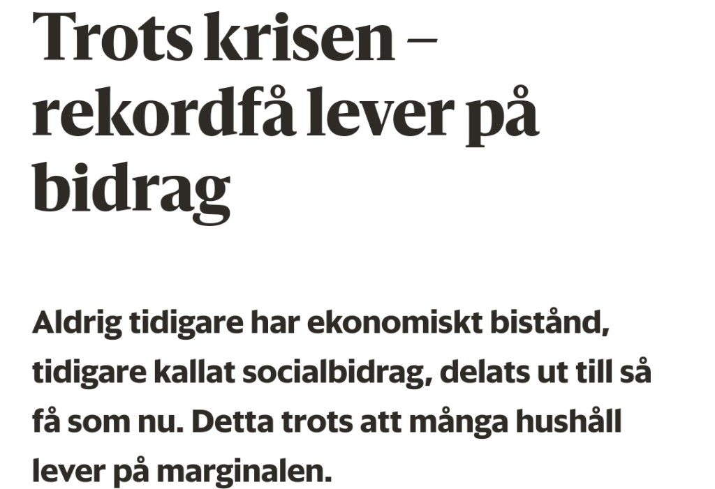 Dagens nyhet att rekordfå lever på bidrag basunerades ut av massmedia i morse, hur nu det är möjligt när konkurserna ökat och den privata konsumtiomen minskat i landet.