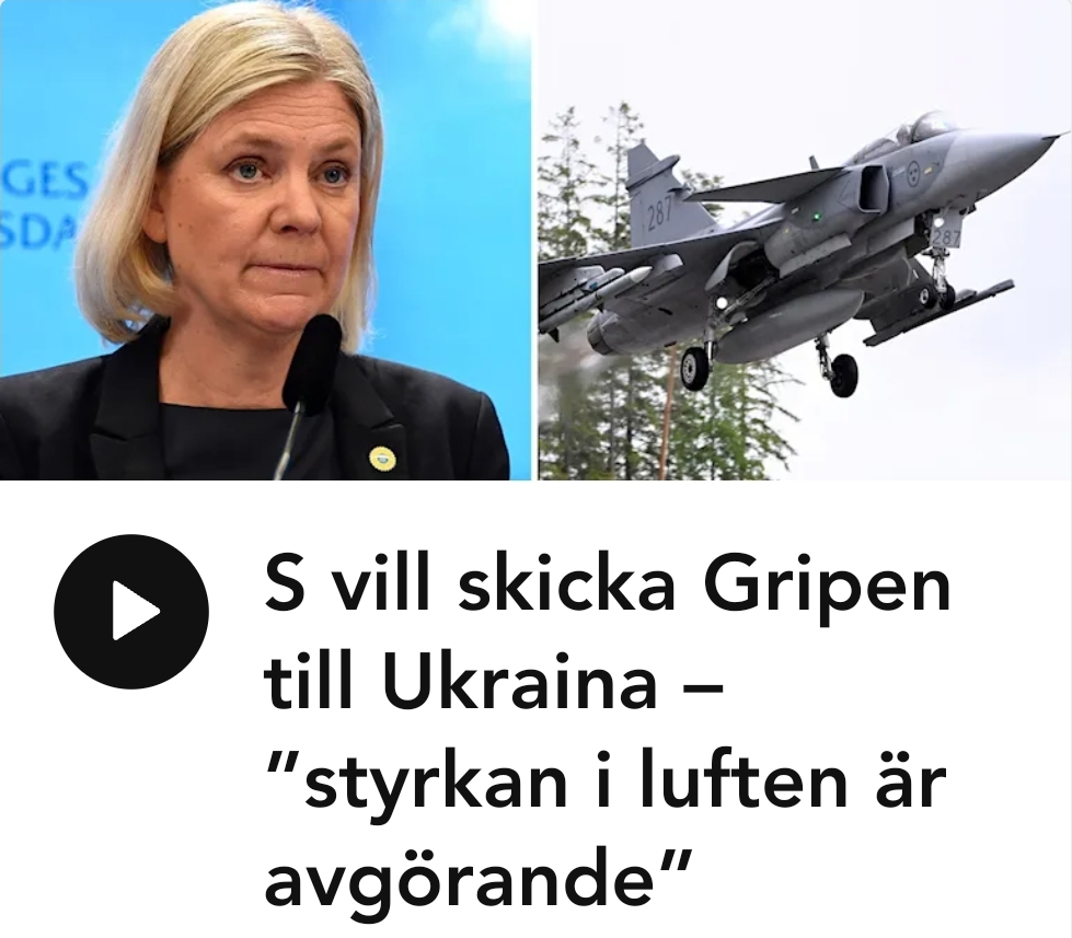 Dagens utspel från Socialdemokraterna där man vill att Sverige förbereder sig för att skicka Jas Gripen till Ukraina är ännu ett bevis på att man inte alls satt sig in i situationen utan endast är ute efter att få lite enkla godhetspoäng. Men regeringen är säkert med på tåget och inbillar sig att vår insats kommer att göra STOR skillnad.