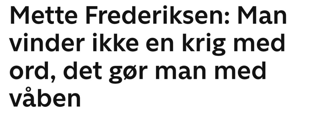 Danmarks statsminister Mette Frederiksen var ett tag på tapeten som kandidat för att ta över rollen som Natochef när Jens Stoltenberg kliver av och i dag visade hon att hon är av rätta virket när hon vid ännu ett besök i Kiev deklarerade att diplomati inte är rätt väg för att få stopp på kriget i Ukraina.