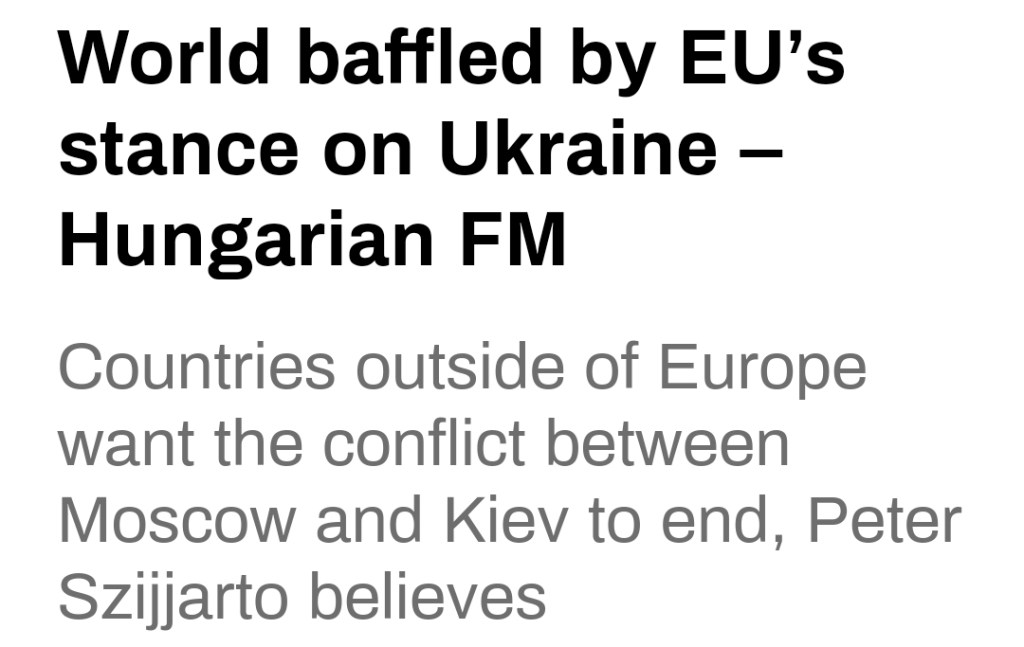 -”Jag kan säga att världen utanför Europa ser fram emot slutet av detta krig eftersom de inte förstår så många saker om det. De förstår till exempel inte hur EU varje gång det pågår ett krig utanför Europa tittar ned från sina höga höstar och kräver fred, förhandlingar samt ett omedelbart slut på våldet. Men när kriget är i Europa ger EU energi till konflikten och levererar vapen. Bryssel ger inte ens en plattform för meningsfull dialog om konflikten mellan Moskva och Kiev eftersom alla som talar om fred omedelbart stigmatiseras.”