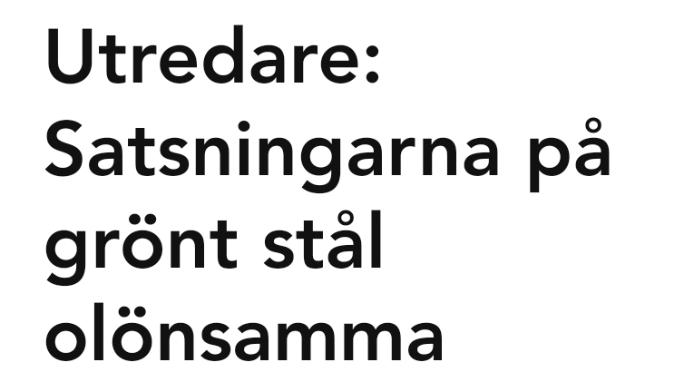 Som med så mycket annat som inte är lönsamt som härrör till klimathysterin (vindkraftverk, elbilar och elvägar till exempel) framkommer det nu att även mångmiljardsatsningarna på grönt stål av bland annat statligt ägda LKAB är bortkastade eftersom det är olönsamt.