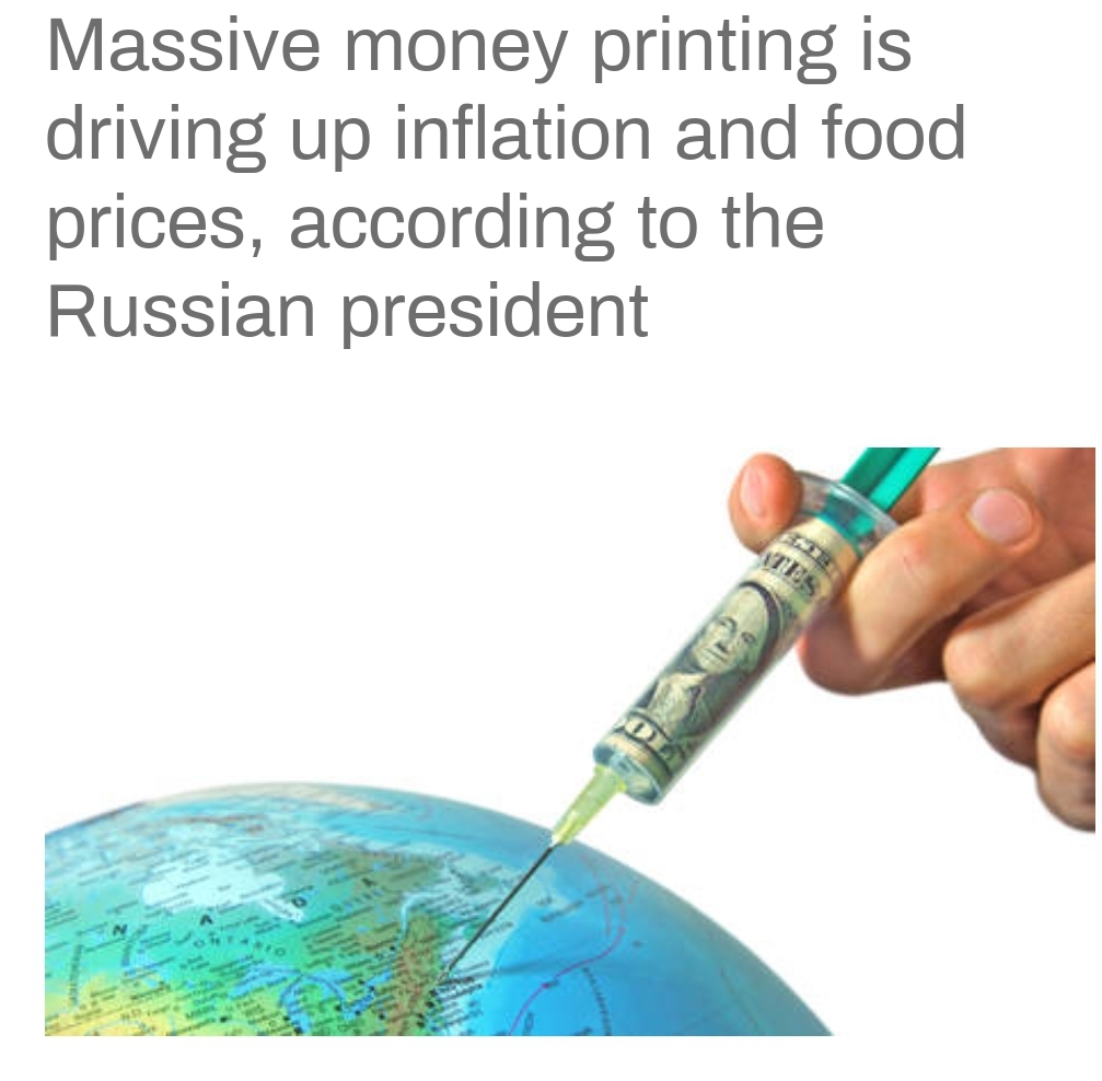 Här slår Putin huvudet på spiken då antalet obegåvade politiker som historien igenom intalat sig själv och människor runt omkring att ”problemen inte kommer drabba oss då vi bara ska ska trycka upp lite mer pengar….”, troligen är oräkneliga.