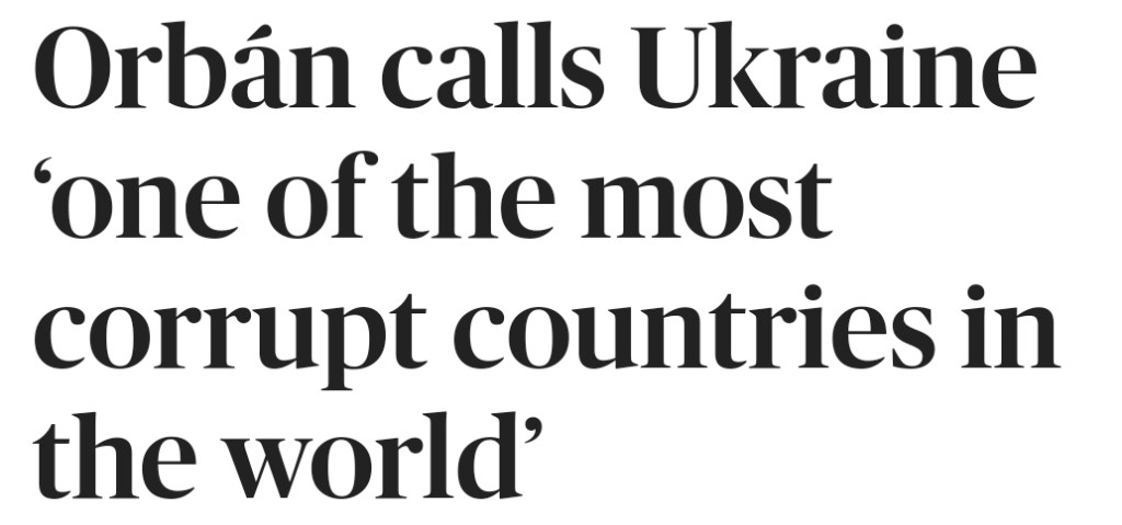 -”Ukraina är ett av de mest korrupta länderna i världen och är inte redo för EU-anslutning. Ungern, som Ukrainas granne, vet exakt vad som händer där – oavsett vad de tycker i Paris, Bryssel eller Haag. Låt oss bara säga att vi inte samtycker till deras EU-medlemskap som skulle belasta de andra medlemsländerna eftersom de skulle behöva betala mer bidrag. Frankrike skulle exempelvis behöva bidraga med 3,5 miljarder euro mer varje år än vad de gjort hittills. Att föra in ukrainskt jordbruk i EU-systemet skulle förstöra jordbrukssektorn i andra länder.”