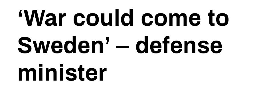 ”War can come to Sweden… It sounds more like a new tourism slogan targeting Mercenaries & Revolutionaries. ”Are you finding it too dry in the Middle East? Don’t like the food in Africa? Come have your war in beautiful Sweden! Take your time and enjoy skating on thin ice and with trenches like ours you’ll think you’ve discovered Santas Cave! Come get your selfie with Ulf Kristersson and the whole gang! Complete access to our world-class NATO annual conference with complimentary buffet for the whole hoard! Too low on funds? Chillax… we got you covered with loans from the IMF and World bank all secured by your national assets. Up to 35% of the value paid out and 50 years of easy payments just 25% interest payment terms*. CALL 1800 SWEDE-MEAT Today!”