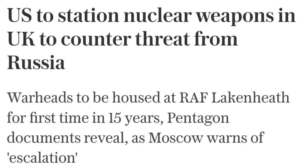 Som en ytterligare eskalering av proxykriget mot Ryssland kommer USA att placera kärnvapen i Storbritannien med stridsspetsar som uppges vara tre gånger mer kraftfulla än atombomberna som exploderade över Hiroshima i Japan 1945.