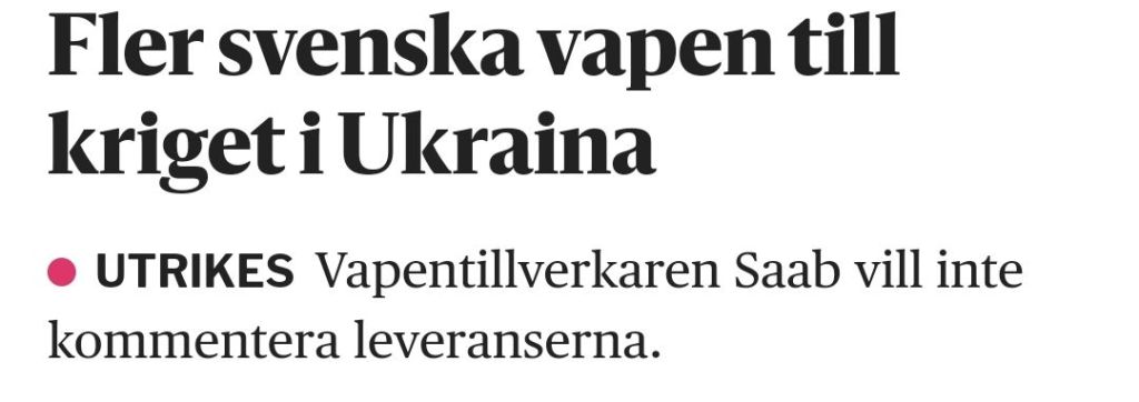 3 reaktioner till “Vapen från Sverige hjälper till att hålla igång kriget och döda civila i Ukrainakonflikten