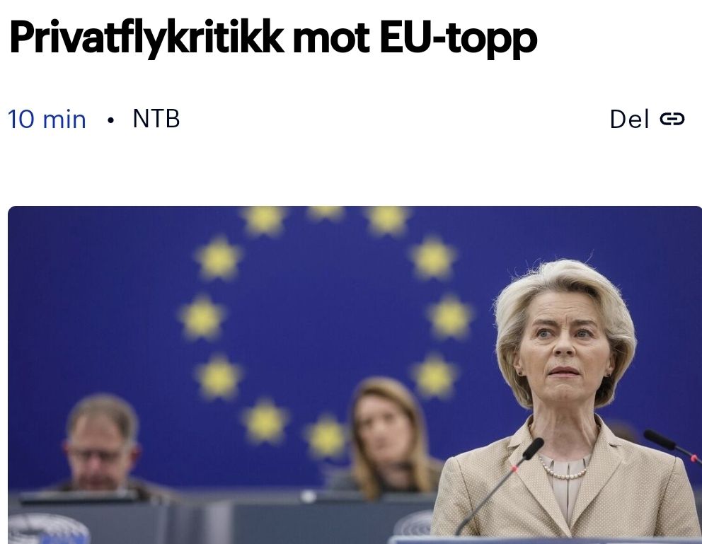 Ännu ett bevis på att politikeradeln inte lever som de lär är EU-kommissionens ordförande Ursula von der Leyen – bland annat känd för att ha varit jävig när hon skötte EU:s covidvaccinupphandlingskontrakt med Pfizer-Biontech om 1,8 miljarder doser, men ändå planerar för att sitta ännu en mandatperiod – som nu får kritik på hemmaplan för att hon utnyttjat privatflyg på ett oansvarigt sätt.