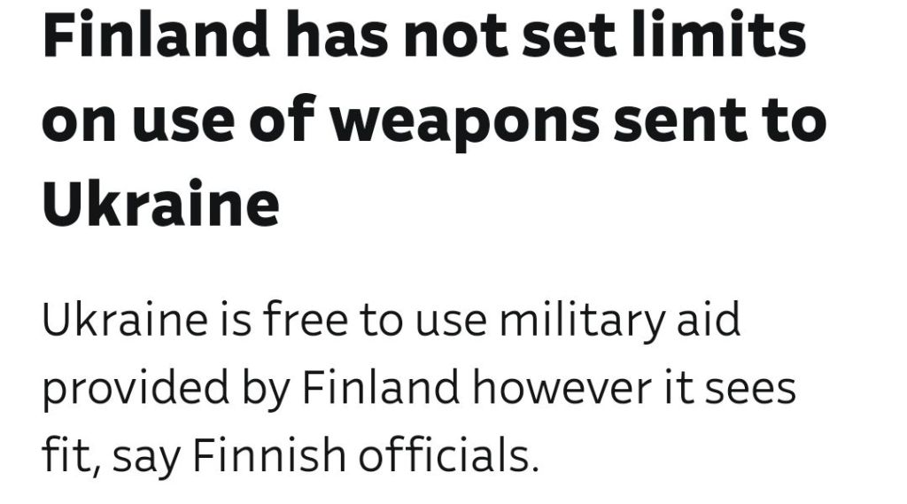I går konstaterade Finlands försvarsminister Antti Häkkänen att Ukraina är fritt att använda vapnen från Finland som de anser lämpligt, inklusive för attacker på ryskt territorium.