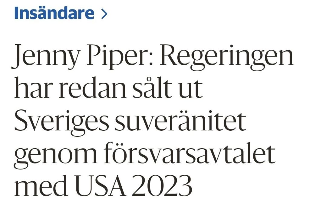 https://www.ystadsallehanda.se/insandare/jenny-piper-regeringen-har-redan-salt-ut-sveriges-suveranitet-genom-forsvarsavtalet-med-usa-2023/